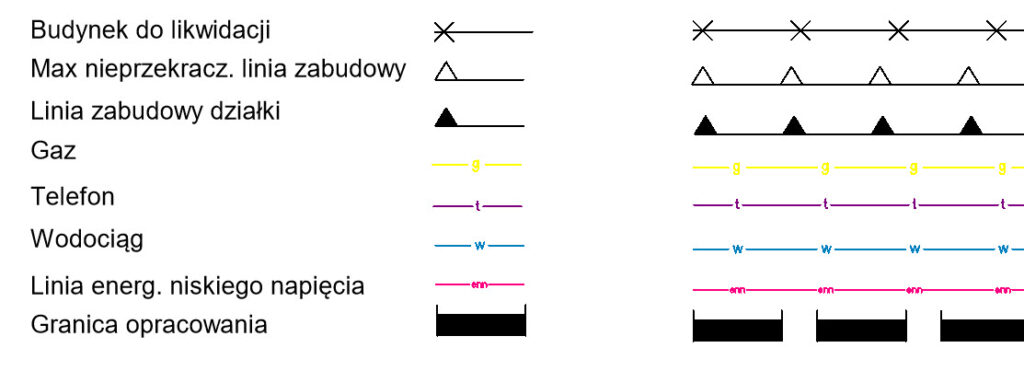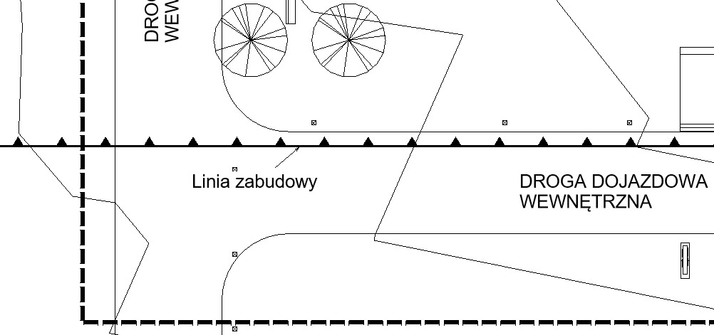 Proces ten prześledźmy na konkretnym przykładzie, gdzie na koniec uzyskamy narzędzie do rysowania Linii zabudowy działki, jak niżej.