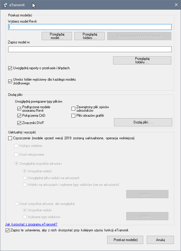 eTransmit-przygotowanie pakietu plików projektu Revit