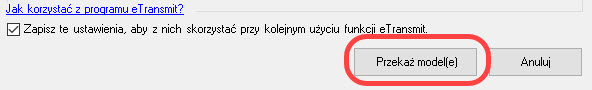 Użycie polecenia Przekeż model(e) nie powoduje już wyświetlenia monitu. Pojawia się okno eTransmit.