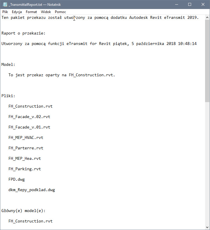 Warto przejrzeć plik raportu _TransmittalReport.txt.
