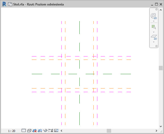 Prześledźmy dostępne opcje płaszczyzn na przykładzie nowej rodziny, utworzonej na szablonie Meble (metryczne).rft.