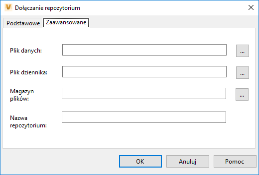 Dla każdego dołączanego repozytorium przejdź na zakładkę zaawansowane i wskaż lokalizacje poszczególnych plików: