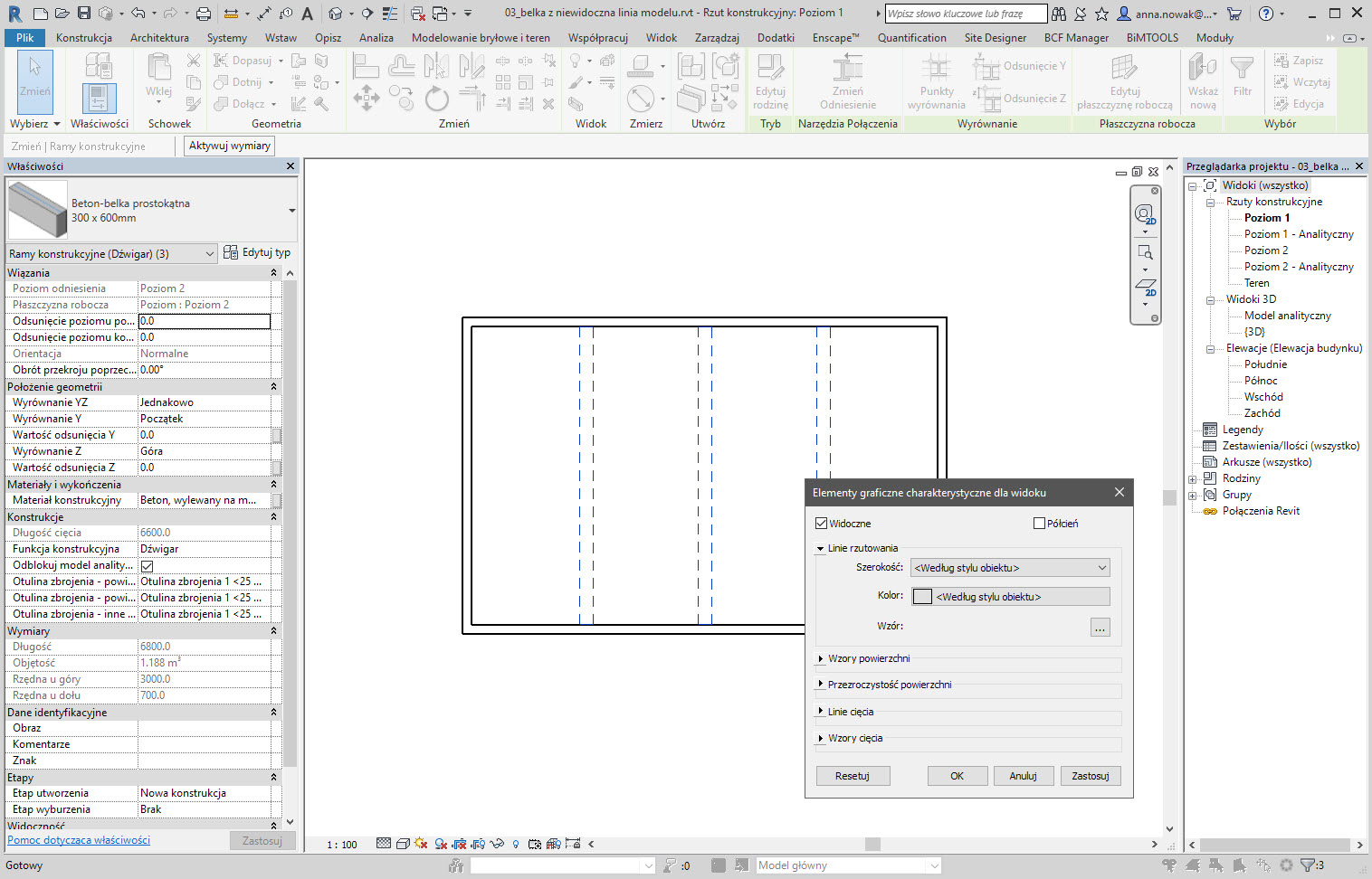 Widoczność belek konstrukcyjnych umieszczonych ponad płaszczyzną cięcia w Autodesk Revit