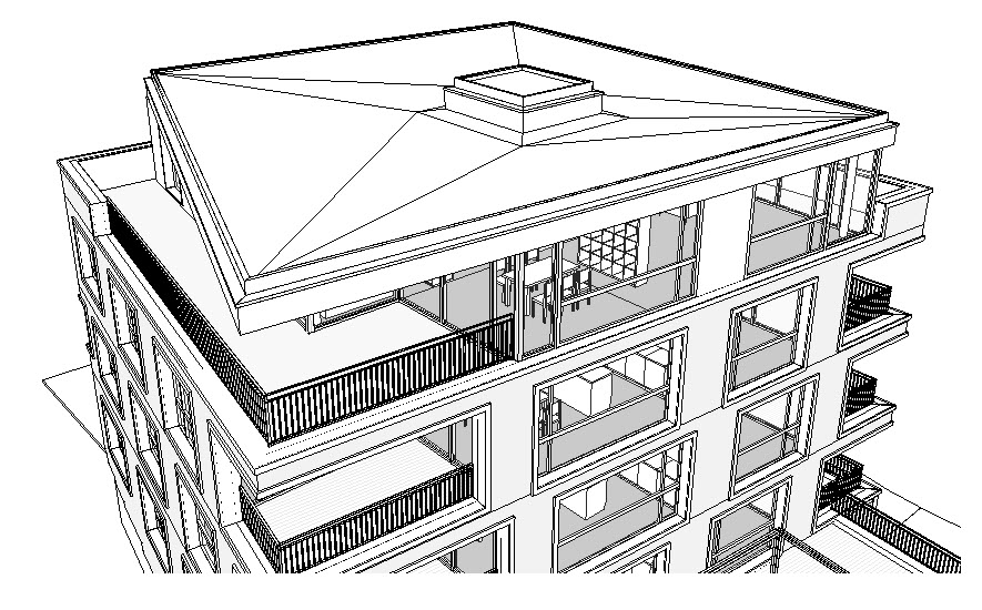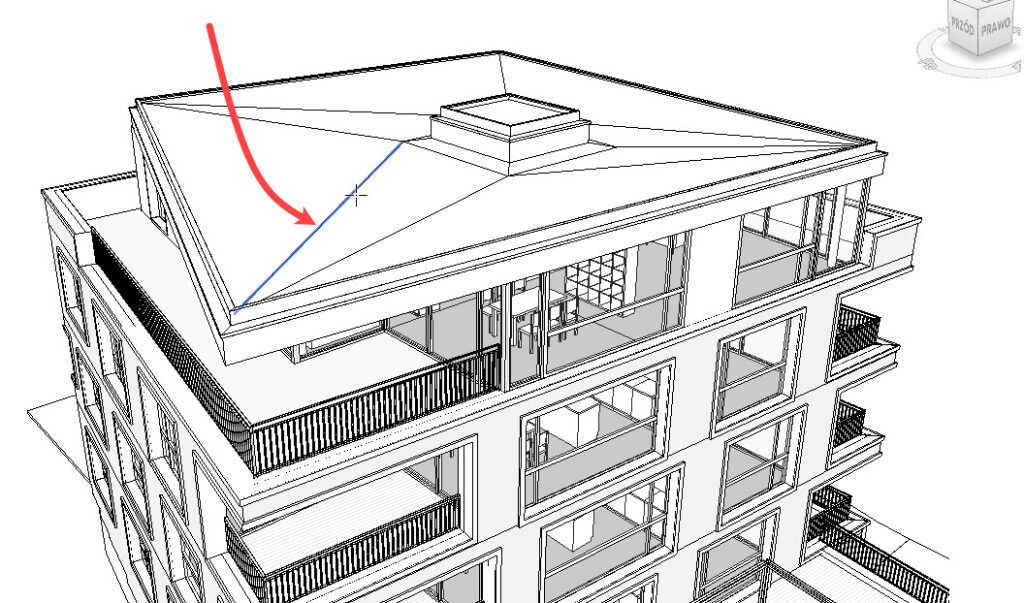 Elewacje z kolei czasem potrzebują, aby niektóre krawędzie obiektów podkreślić a inne ustawić jako cieńsze niż wynika to z definicji w stylach obiektów Revit (np. podkreślenie zacienionych wnęk na elewacjach grubą linią).
