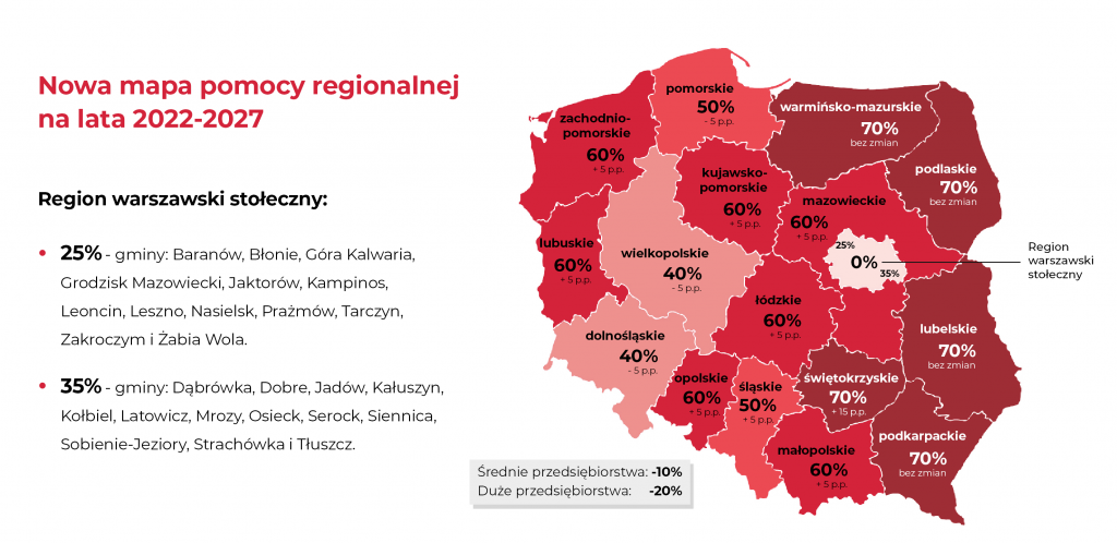 Poziom dofinansowania na cele inwestycyjne jest zależny od mapy regionalnej.