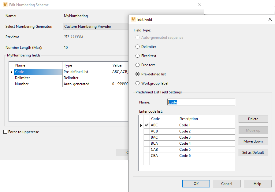 We wszystkich schematach numerowania zdefiniowanych w Vault 2020 mamy możliwość wyboru odpowiedniego generatora liczb dla liczników.