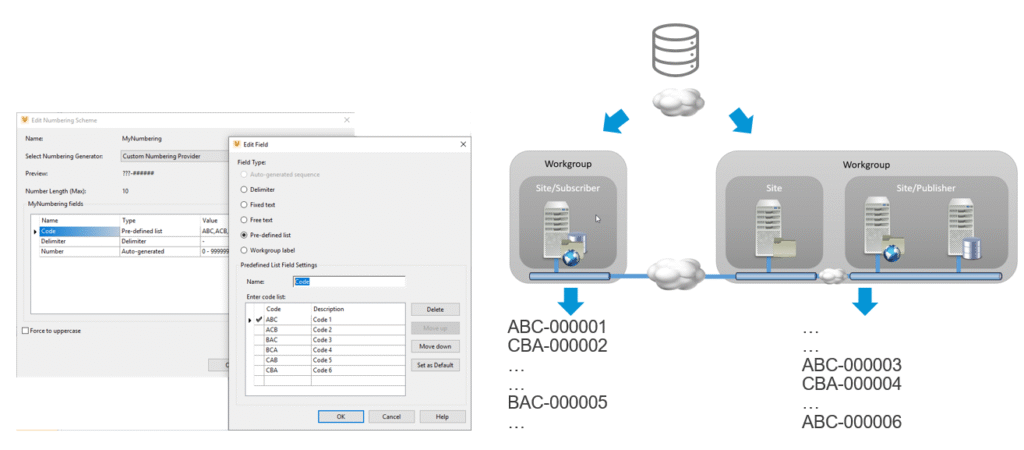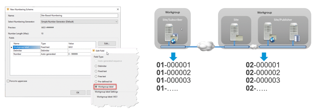 Jego działanie znamy dobrze z poprzednich wersji programu. W przypadku tworzenia schematów używanych w środowisku z replikacją konieczne było dodawanie identyfikatora grupy roboczej w celu uniknięcia konfliktów w nazwach plików. Liczniki w każdej z grup roboczych były generowane niezależnie. W zaprezentowanym przykładzie przedrostki 01 oraz 02 oznaczają odpowiednie grupy robocze: