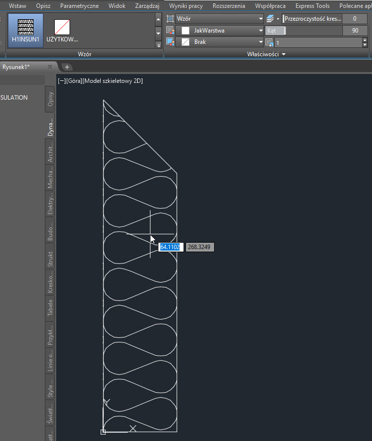 Dzięki temu można wypełniać pod odpowiednimi kątami praktycznie każdy zamknięty obszar. Jedynie wielkość izolacji ustawia się poprzez zmianę skali kreskowania. Aby skorzystać z tej opcji, należy pobrać z sieci i umieścić w odpowiedniej lokalizacji (C:Users<nazwa_użytkownika>AppDataRoamingAutodeskAutoCAD Mechanical <wersja> R<wersja>plkSupport) plik z rozszerzeniem .PAT, który odpowiada za wzór kreskowania. Można bezproblemowo znaleźć darmowe wzory kreskowania, wpisując w wyszukiwarce internetowej frazę np. autocad insulation hatch.